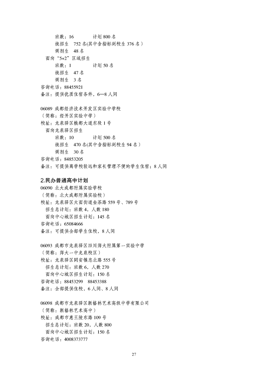 民辦:北大成都附屬實(shí)驗(yàn)學(xué)校、師大一中龍泉校區(qū)、新格林藝術(shù)高中、成都城投菁芙蓉驛都學(xué)校