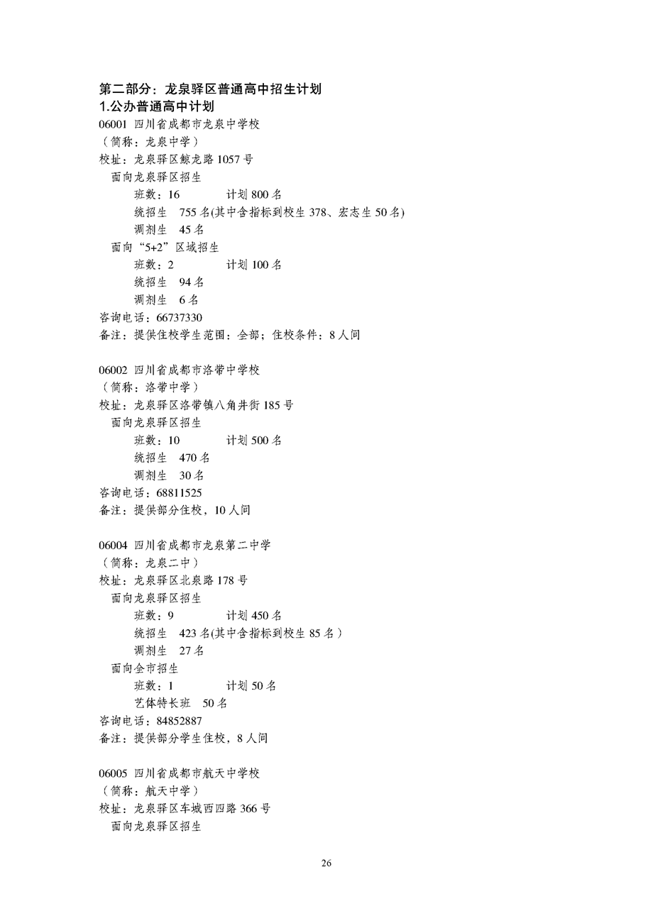 公辦:龍泉中學(xué)、洛帶中學(xué)、龍泉二中、航天中學(xué)、成都經(jīng)濟(jì)技術(shù)開發(fā)區(qū)實(shí)驗(yàn)中學(xué)校